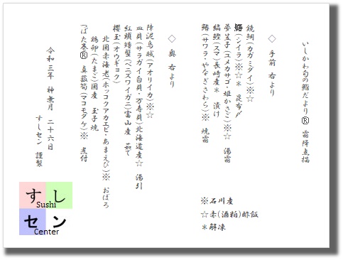 ◇いしかわ旬の鮨だより® 「香箱日和」